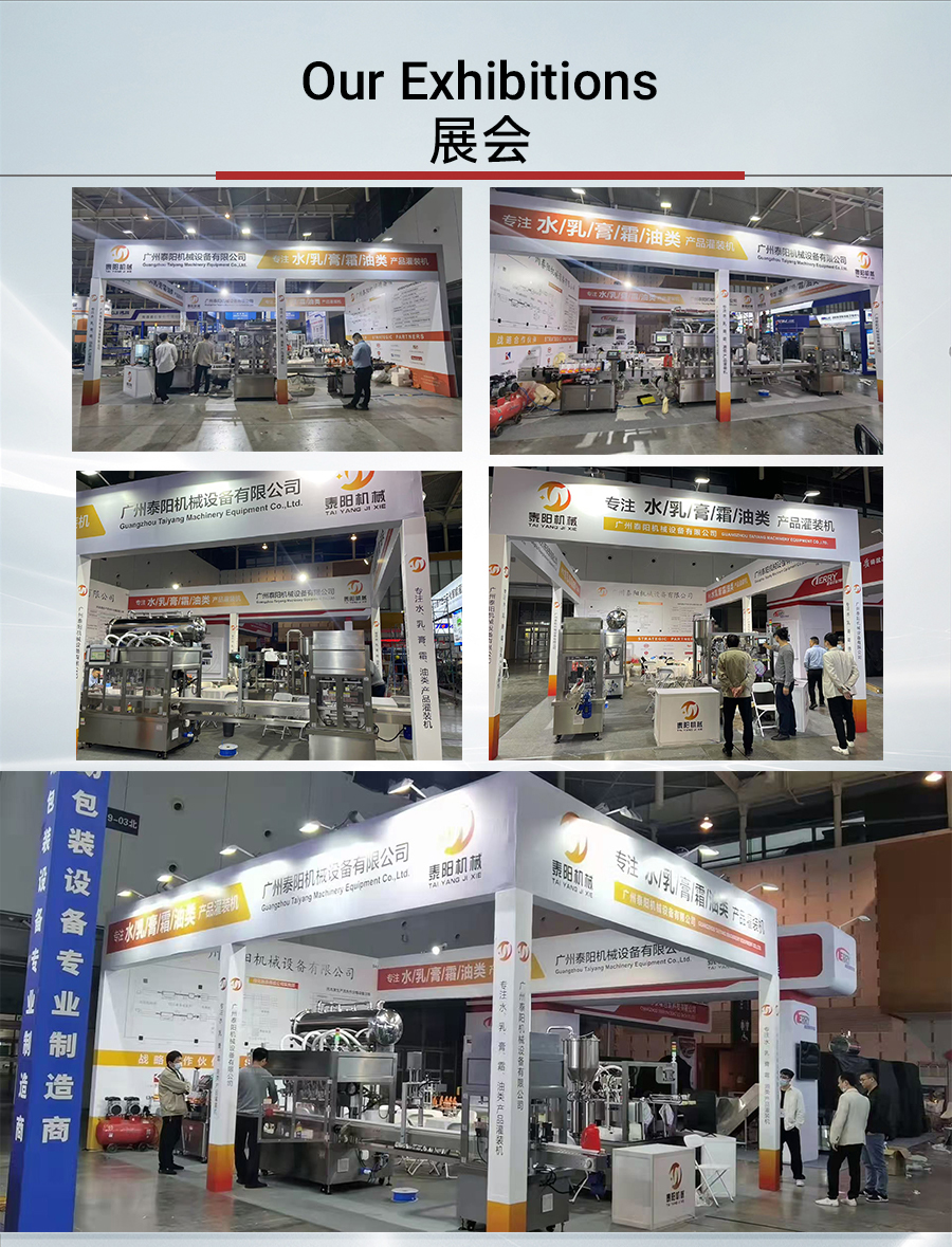 Компанія Taiyang Machinery Equipment Co., ТОВ знаходиться в районі Байюн, місто Гуанчжоу, провінція Гуандун. Наша компанія-це технологічне підприємство, що спеціалізується на дослідженні та розробці, виробництві, продажах та всеосяжній службі післяпродажного обслуговування машин, упаковки, машин для маркування та іншого механічного обладнання , зосереджуйтеся на автоматичній лінії для гарячої та холодної начинки/закулювання/ущільнення/маркування косметики, догляду за шкірою, макіяжем, промиванням та щоденними хімічними речовинами, лотиами, лотоями. З моменту його створення в 2017 році, з надійною якістю, розумними цінами, професійними послугами та хорошою репутацією, наше обладнання розповсюджено на більш ніж 20 провінціях та містах Китаю та експортоване за кордон. Кошок обладнання Taiyang Machinery розробляється на основі відгуків різних клієнтів та накопичується з роками галузевих технологій і особливо популярне у клієнтів. Ми є засновником, відомому галузевим "методом відстеження наповнення". Ми постійно модернізуємо обладнання для підвищення ефективності та стабільності, що дозволяє клієнтам інвестувати за низьку вартість та виробляти при високій ефективності, заощаджуючи при цьому багато робочої сили.